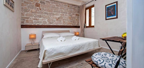 Nestled in the heart of town, just 30 meters from the sea, this charming boutique hotel offers an intimate escape with a rustic interior that exudes warmth and character. The hotel features two cozy rooms with outdoor seating areas on a narrow old town street, and three full apartments with large terraces that provide a modern rustic feel, blending the best of contemporary amenities with timeless design elements. Aged wooden beams, stone walls, and vintage furnishings create a serene and inviting atmosphere, perfect for a relaxing stay.